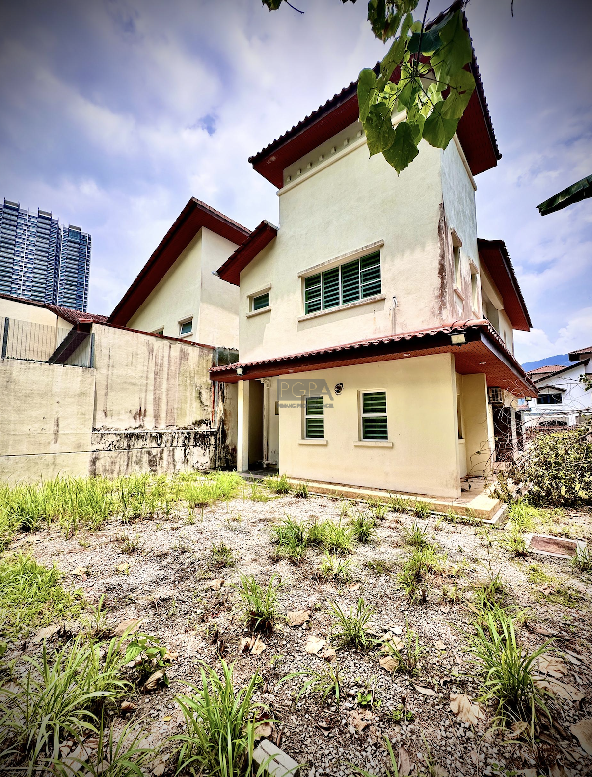 This corner semi-detached house, set on high elevated land in Lembah Permai, Tanjung Bungah, offers a serene living experience with a lush greenery backdrop.