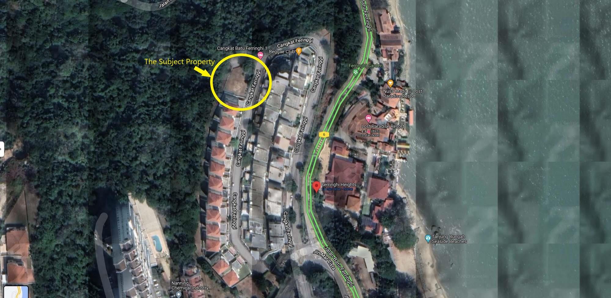 This freehold residential land is located in the Ferringhi Heights, a low-density, gated & guarded landed residential neighborhood right at the boundary between Tanjung Bungah and Batu Ferringhi.
