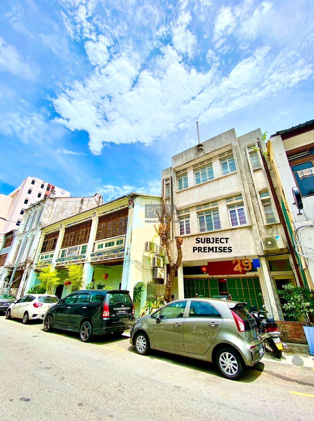 The subject premises are two back-to-back heritage properties:- A handsome three-storey postwar building on China Street, and a double-storey heritage shophouse on Che Em Lane. One of the oldest site inside UNESCO World Heritage City: Georgetown, Penang.