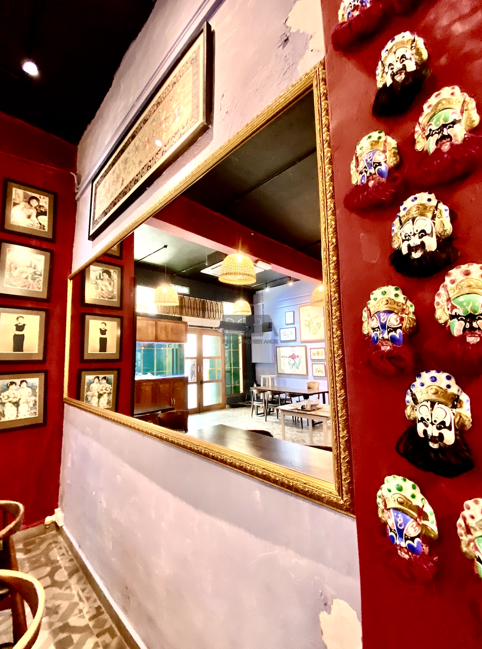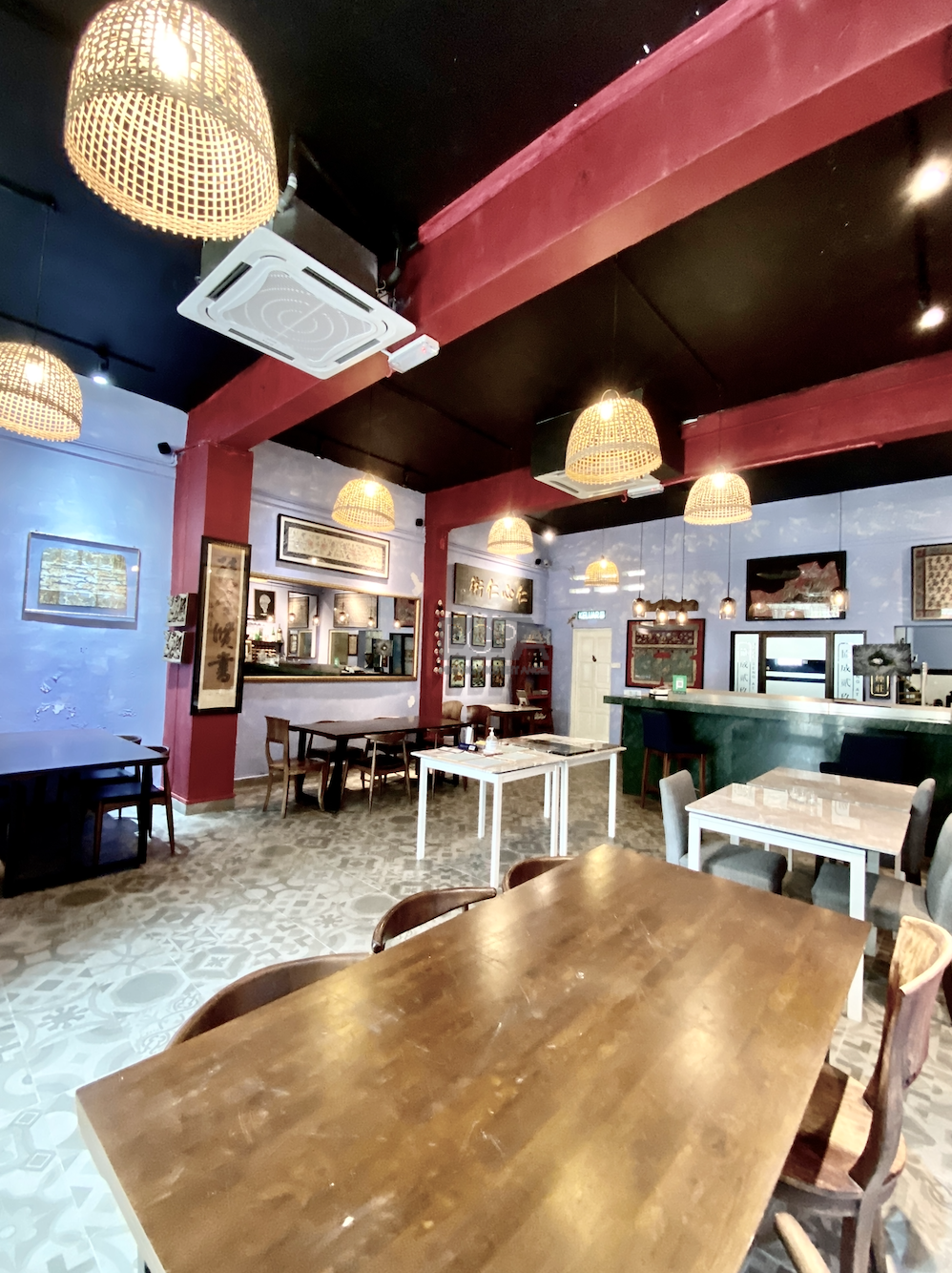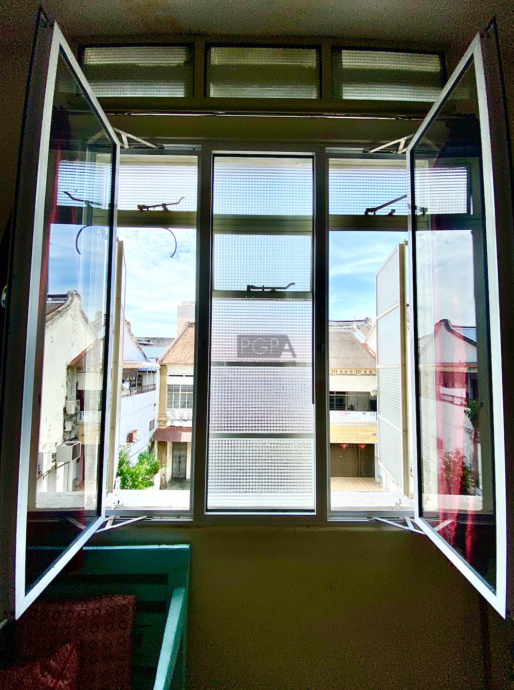 Once it was two private residence to Chinese merchants dating back to 1846. On China street it was rebuilt as one property in an Art-Deco/modern style in the late 1940’s to early 50’s. The handsome new structure boasted the latest concrete form , with solid concrete floors and high ceilings the interior spaces were double the width of traditional and narrow shophouses Restorations began in 2008 and it has since then housed studio apartments, artist residencies, a gallery and now a F&B outlet on the ground floor.