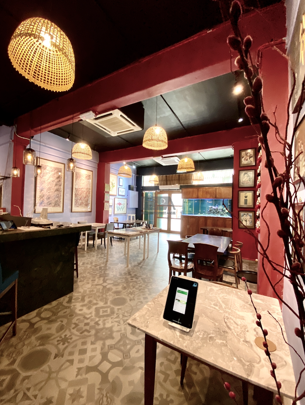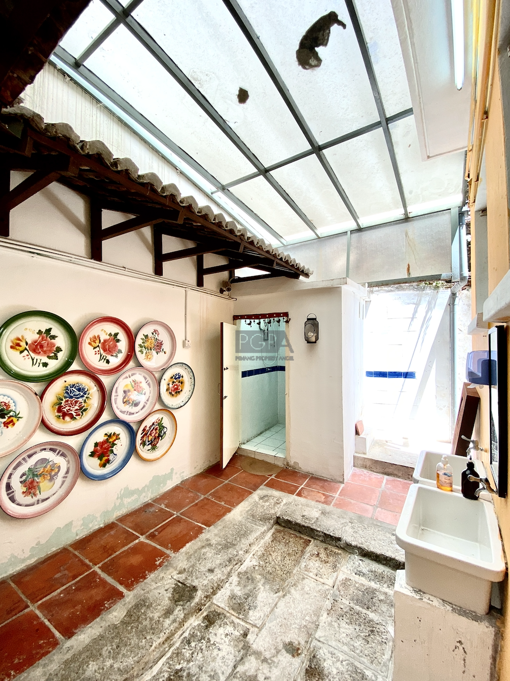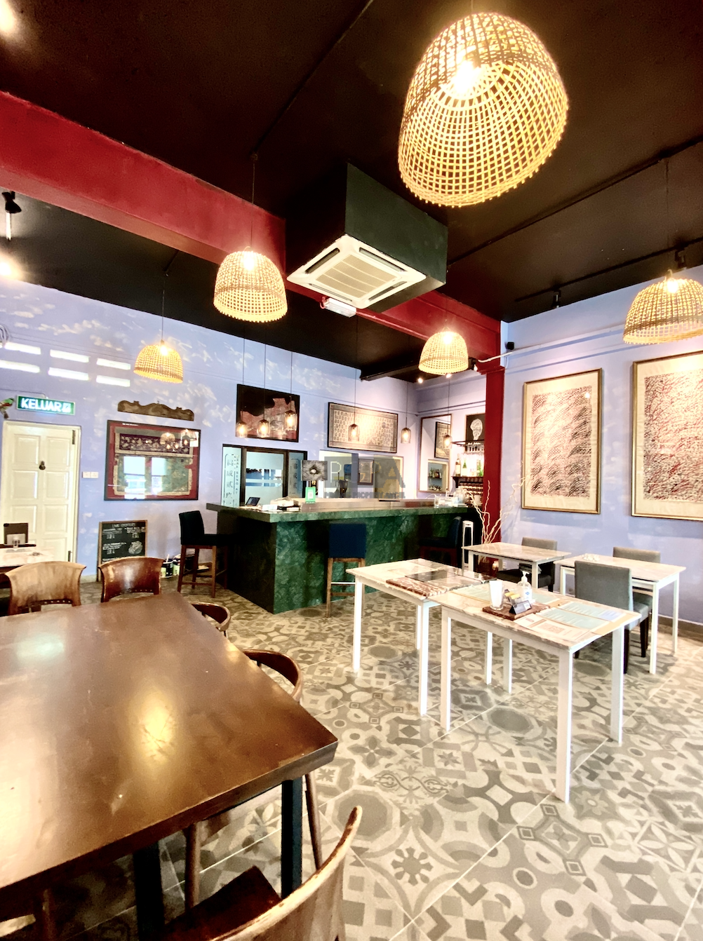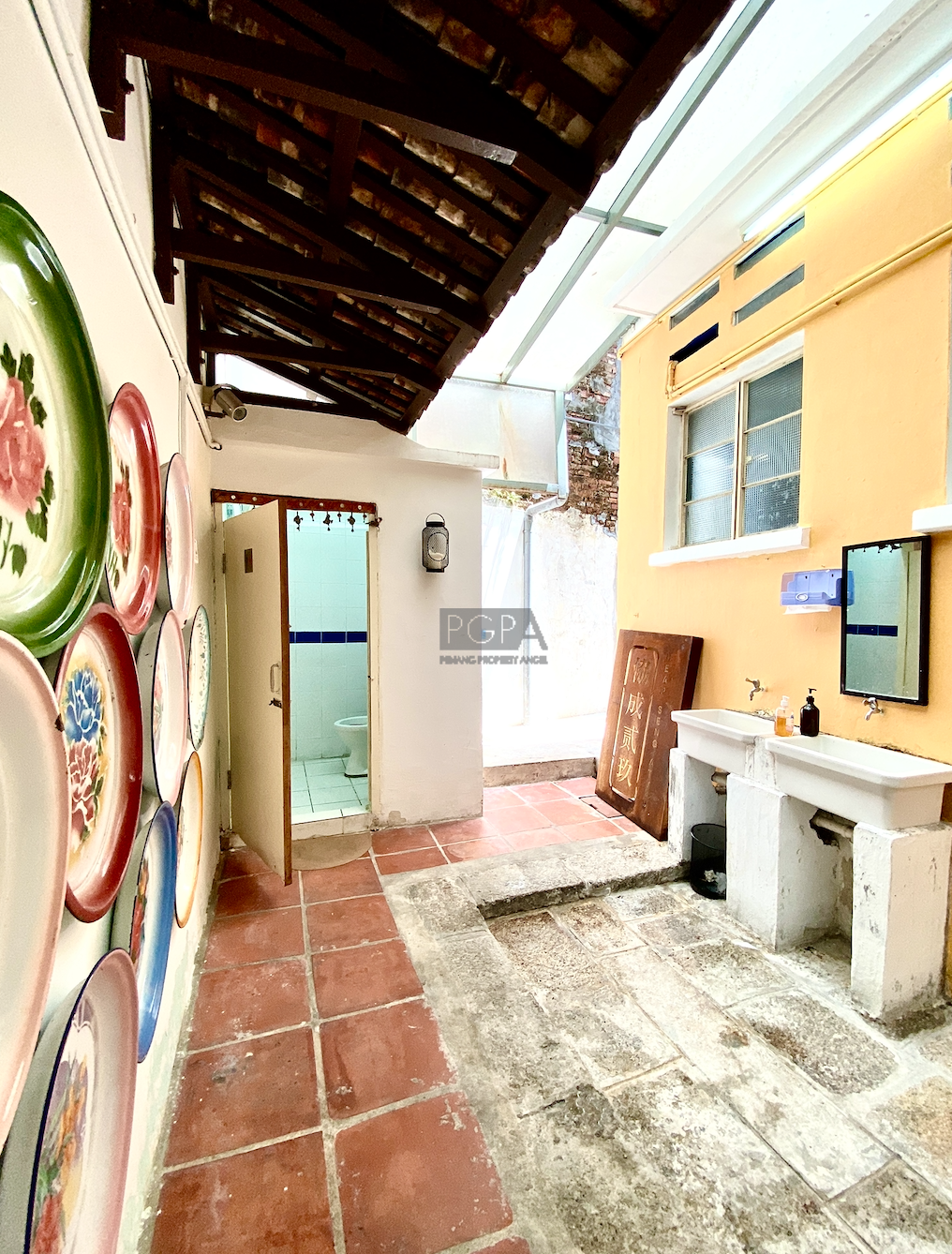 Once it was two private residence to Chinese merchants dating back to 1846. On China street it was rebuilt as one property in an Art-Deco/modern style in the late 1940’s to early 50’s. The handsome new structure boasted the latest concrete form , with solid concrete floors and high ceilings the interior spaces were double the width of traditional and narrow shophouses Restorations began in 2008 and it has since then housed studio apartments, artist residencies, a gallery and now a F&B outlet on the ground floor.