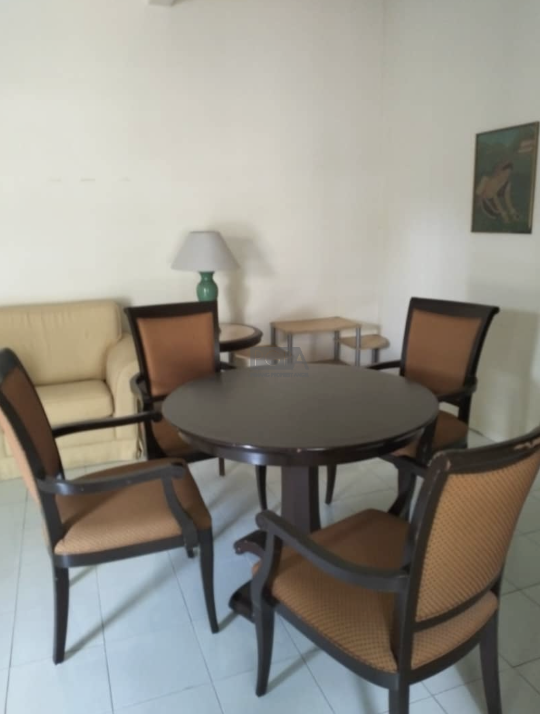 This freehold property sits on approximately 2,300 sqft of land and features 3+1 bedrooms and 3 bathrooms. All rooms are equipped with fans, air conditioning, wardrobes, and beds. The kitchen is fully fitted with a fridge and stove, and a washing machine is provided in the yard. The lounge comes with a sofa and TV, and the dining area includes a dining set.